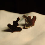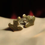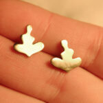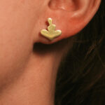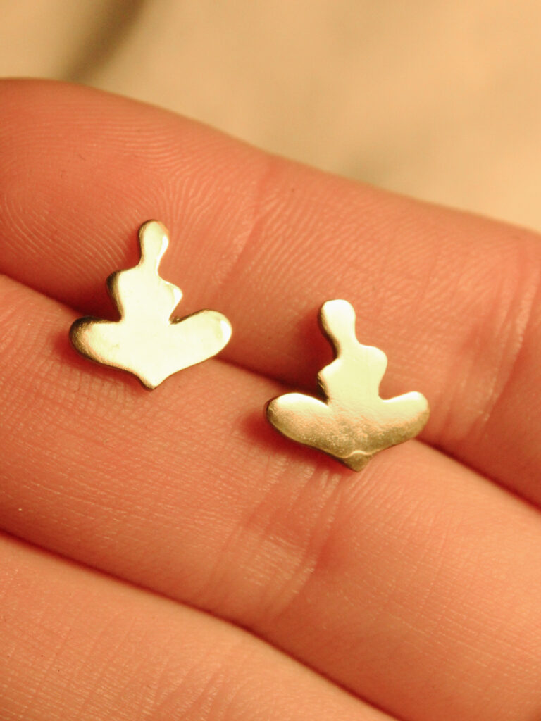 Drobne złocone kolczyki na sztyftach o organicznym kształcie inspirowanym pozycją kwiatu lotosu.